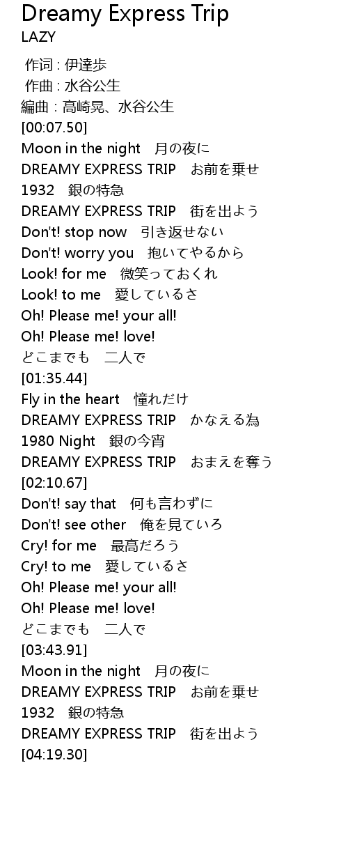 | [02:05.22] | DREAMY EXPRESS TRIP おまえを奪う |