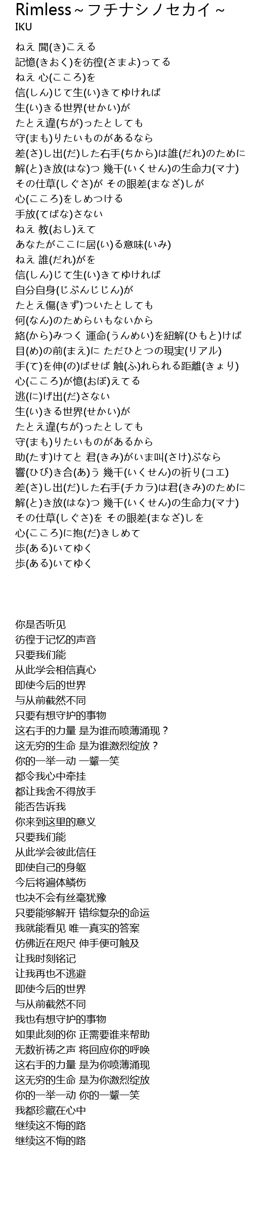 | [03:03.290] | 響(ひび)き合(あ)う 幾千(いくせん)の祈り(コエ) |