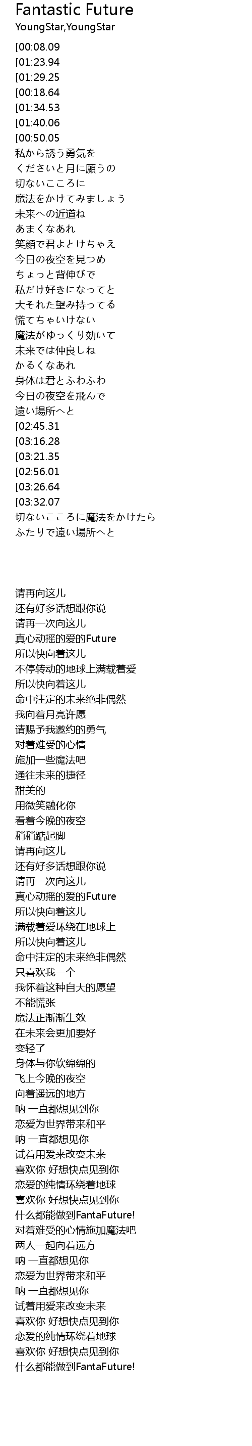| [02:58.68][03:32.07] | hé fantafuture |
