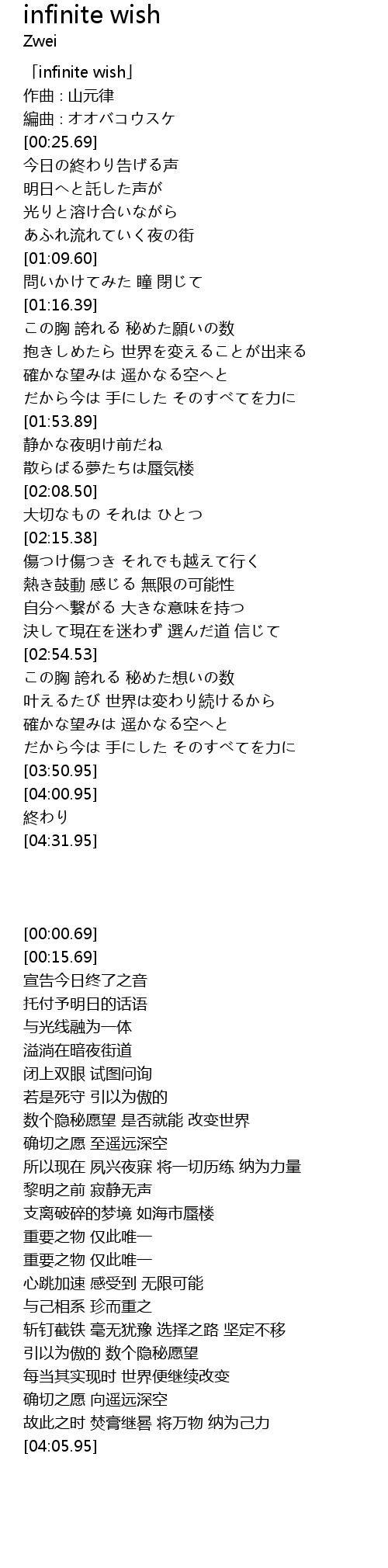 | [00:00.69] | 「infinite wish」 |