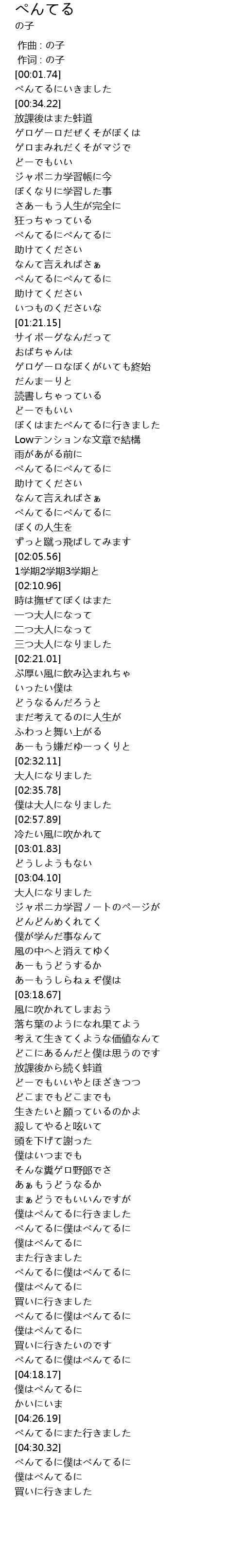 | [01:58.34] | ぺんてるにぺんてるに |