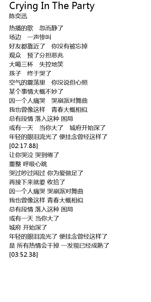 | [02:45.12] | 因一个人痛哭 哭崩派对舞曲 |