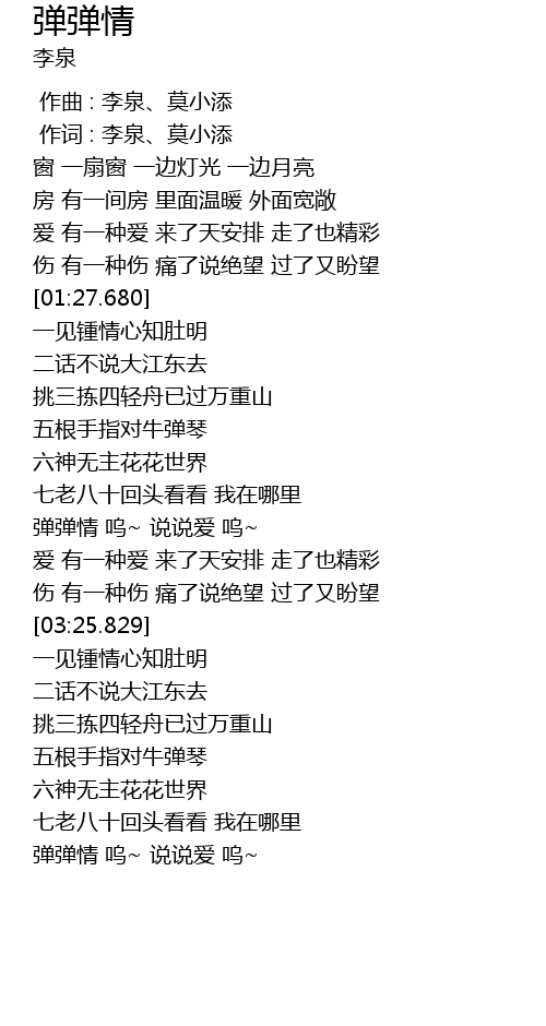 | [01:58.280] | 弹弹情 呜~ 说说爱 呜~ |