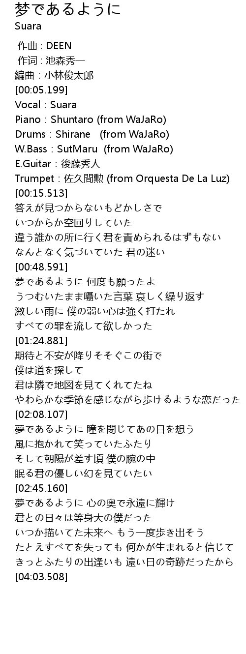 | [00:49.236] | 夢であるように 何度も願ったよ |
