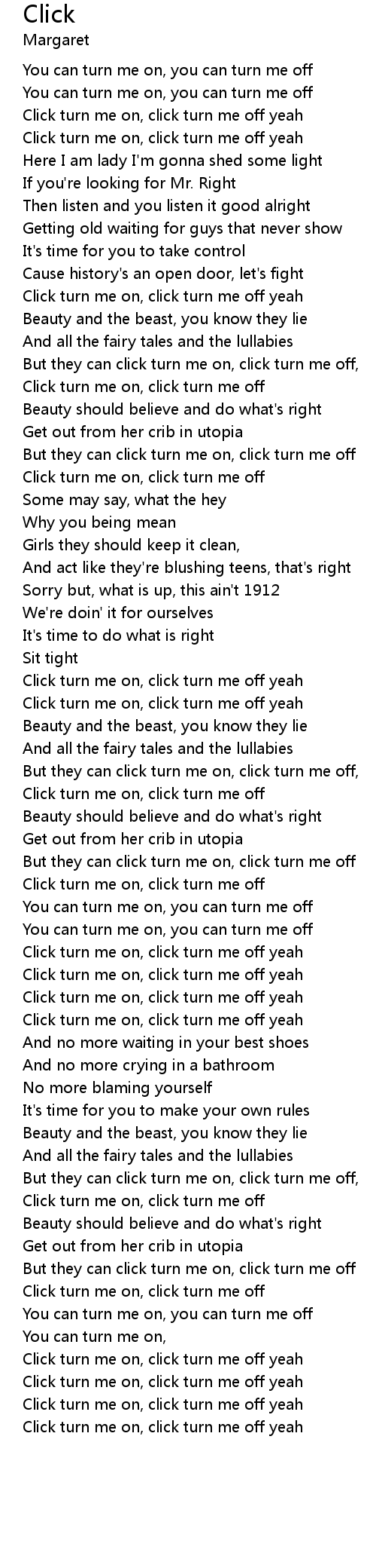 Click turn me on, click turn me off yeah |