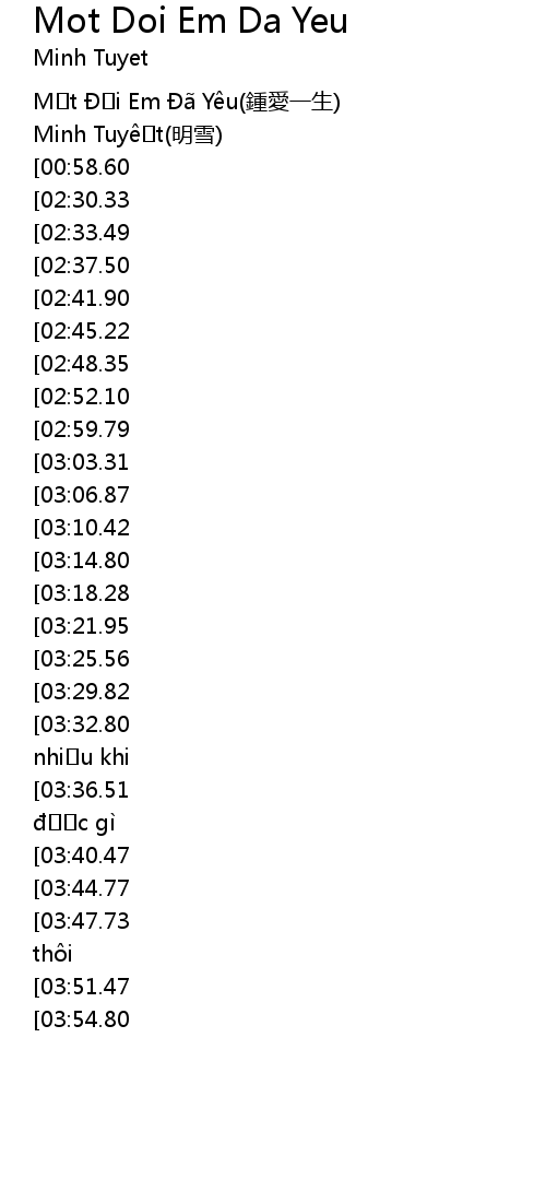 | [01:54.13][03:54.80][04:24.32] | Một đời em đã yêu... |
