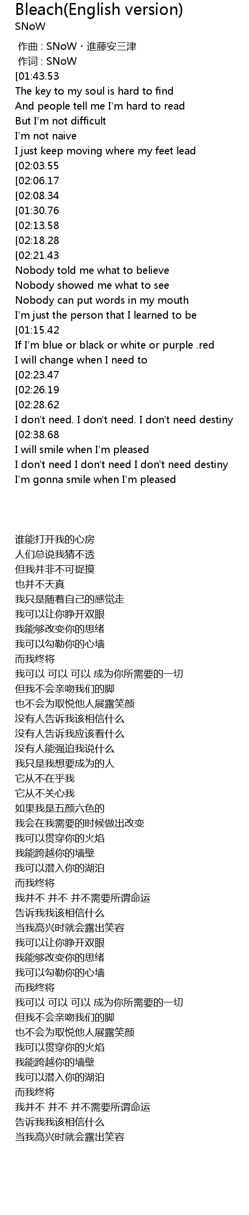 | [01:33.24] | I don' t need. I don' t need. I don' t need destiny |