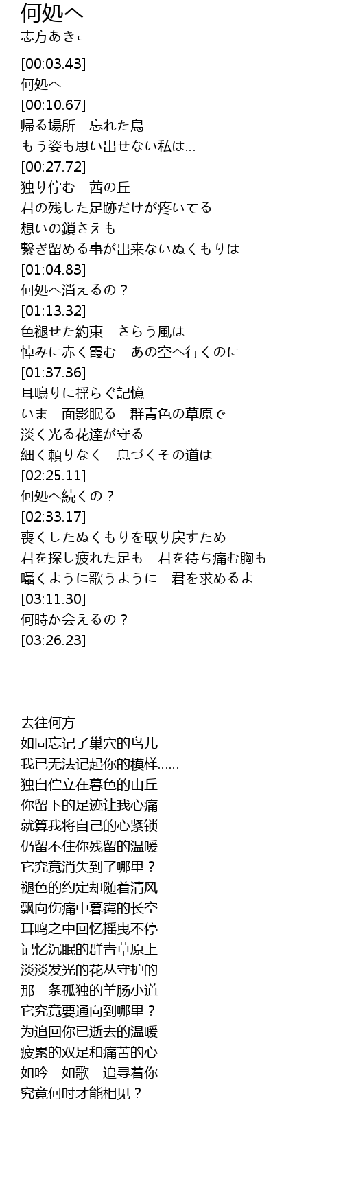 | [00:11.45] | 帰る場所 忘れた鳥 |