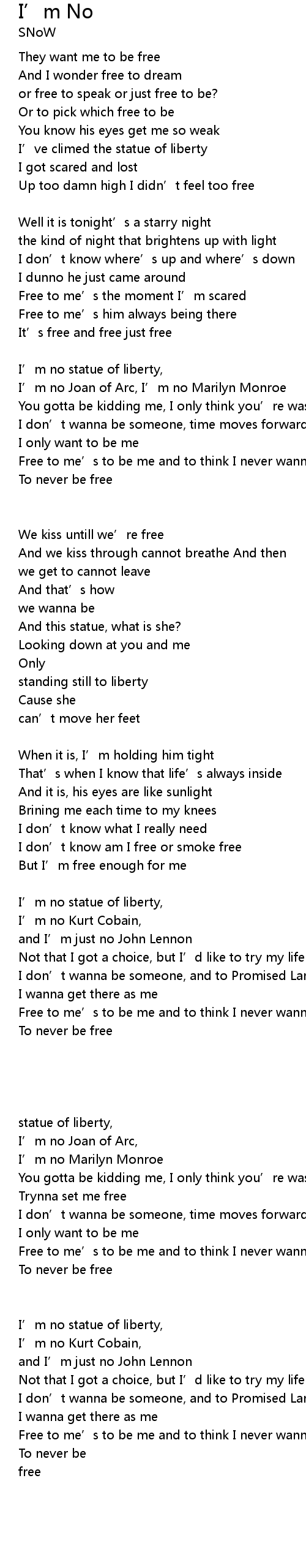 | Free to me' s to be me and to think I never wanna bewithout him | |