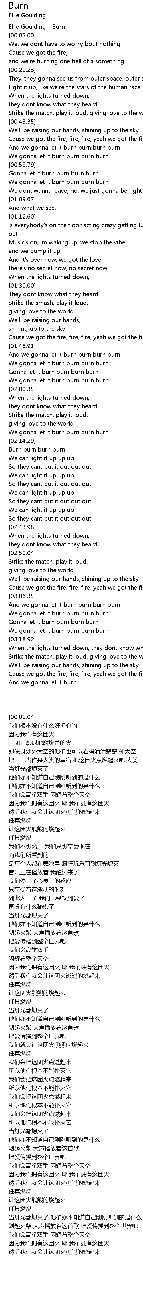 [00:01.04] Ellie Goulding - Burn