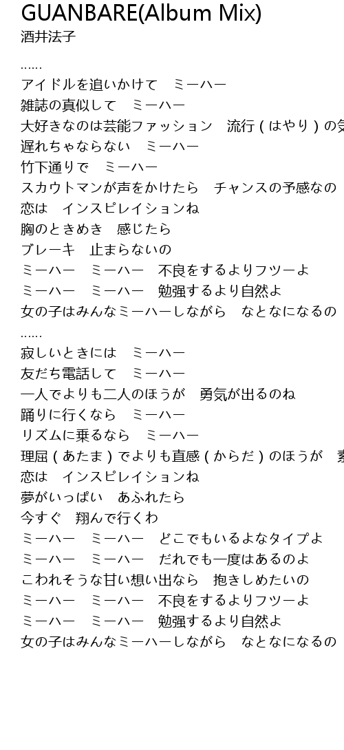 | [01:10:00] | ミーハー ミーハー 不良をするよりフツーよ |