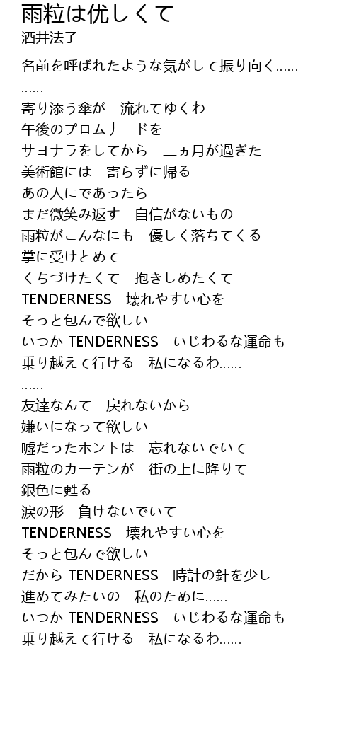 | [03:06:75] | TENDERNESS 壊れやすい心を |
