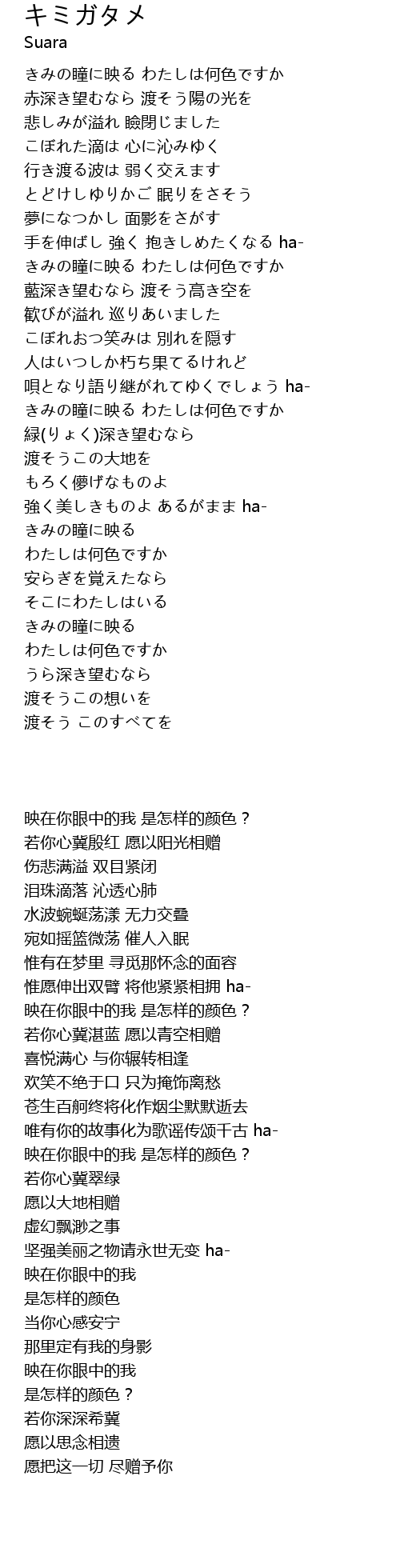 | [02:10.910] | きみの瞳に映る わたしは何色ですか |