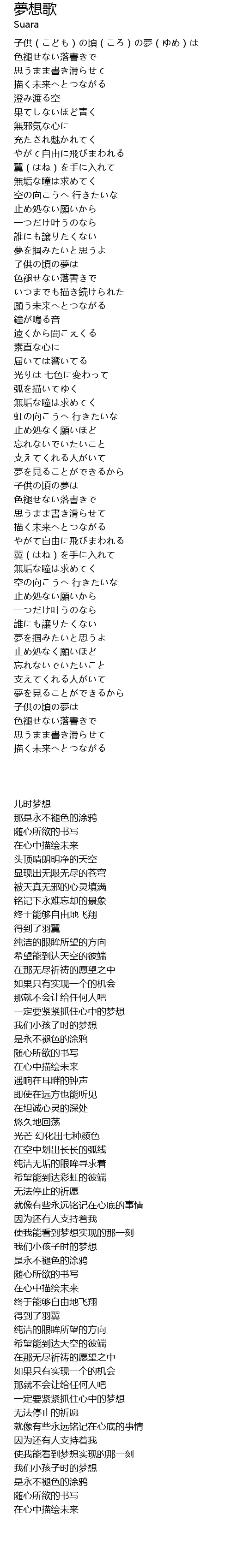 子供(こども)の頃(ころ)の夢(ゆめ)は |