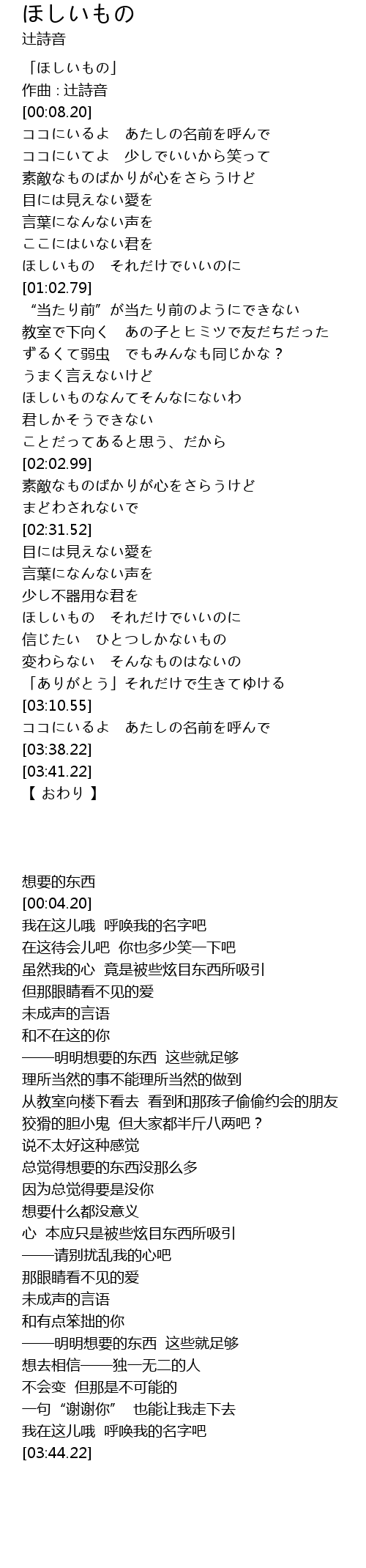 | [00:54.65] | ほしいもの それだけでいいのに |