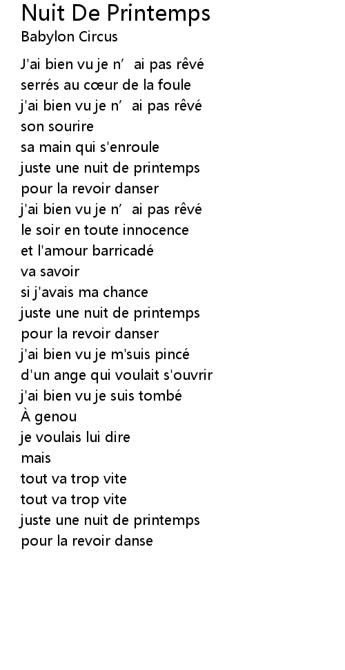 | Song | Nuit De Printemps |