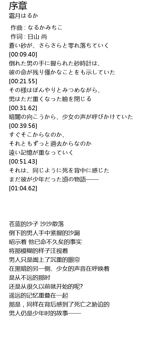 | [00:04.63] | 蒼い砂が、さらさらと零れ落ちていく |