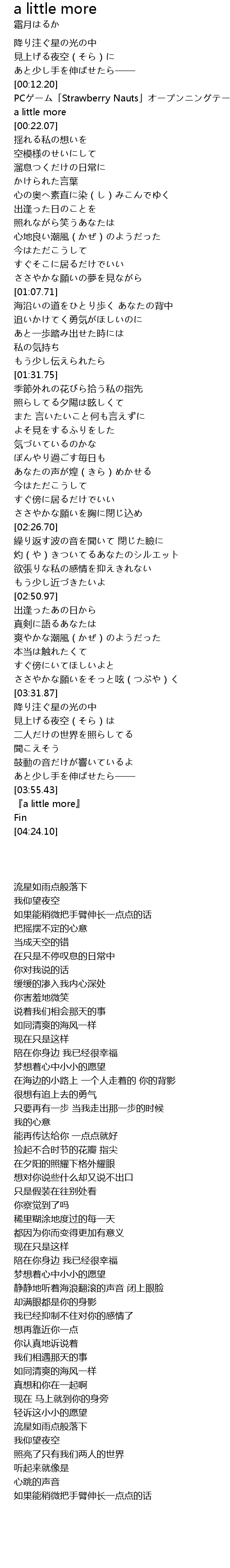 | [03:27.14] | ささやかな願いをそっと呟(つぶや)く |