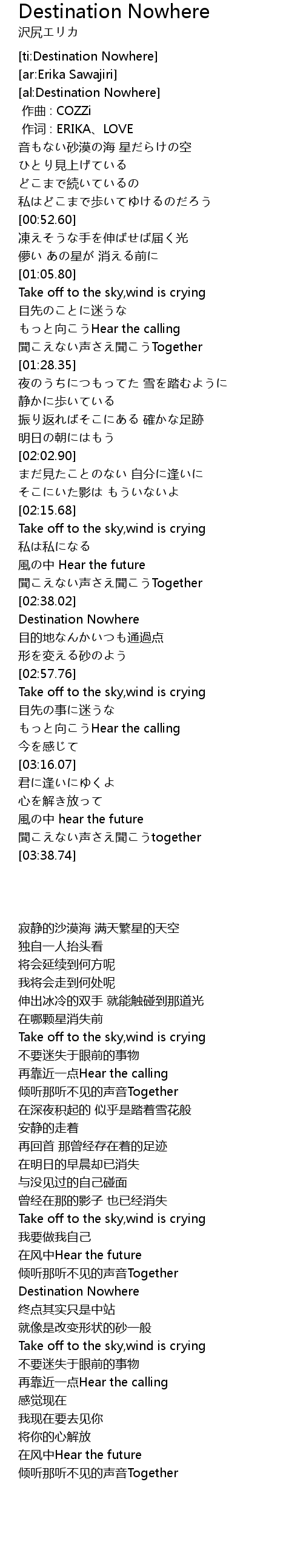 | [02:39.59] | Destination Nowhere |
