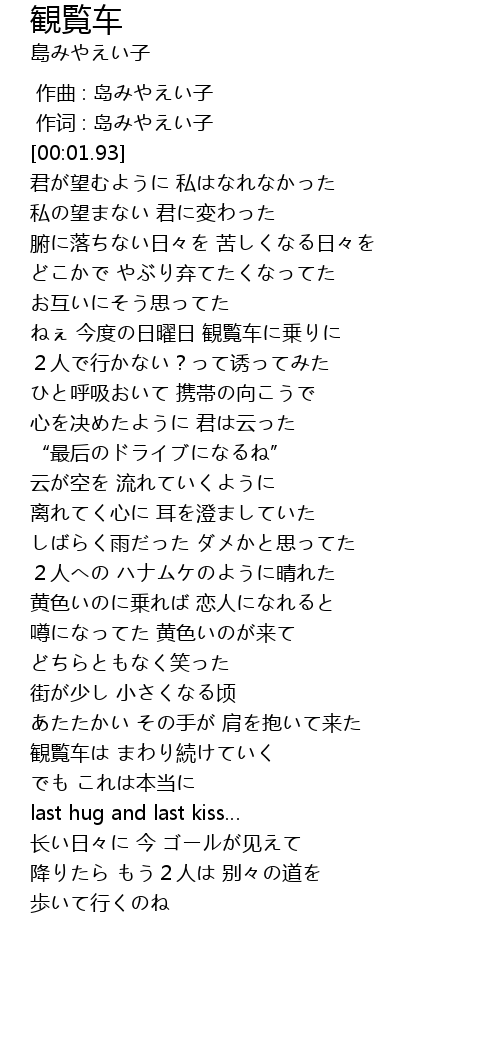 | [01:14.19] | ねぇ 今度の日曜日 観覧车に乗りに |