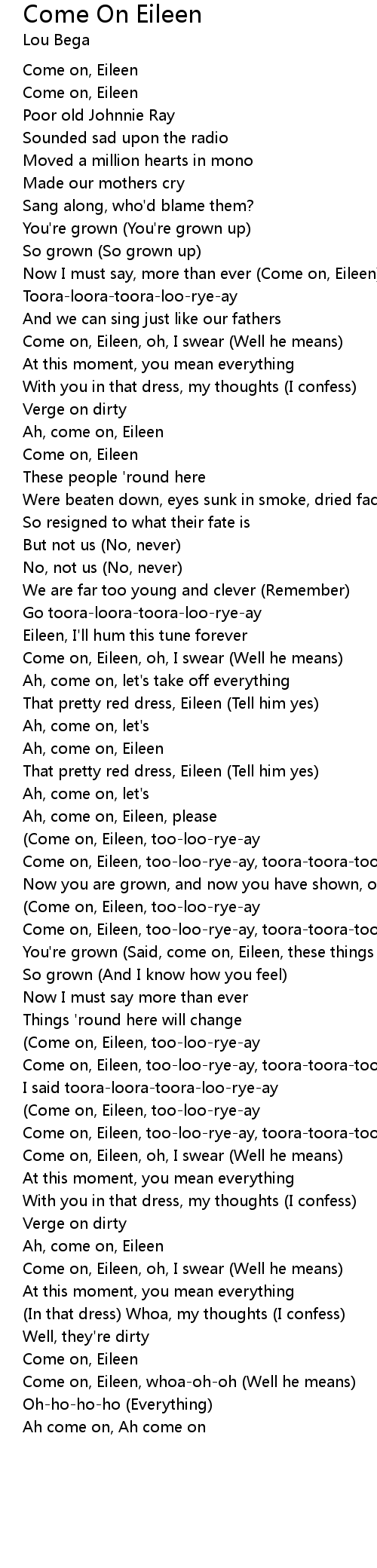 Come on, Eileen, too-loo-rye-ay, toora-toora-too-loora) |