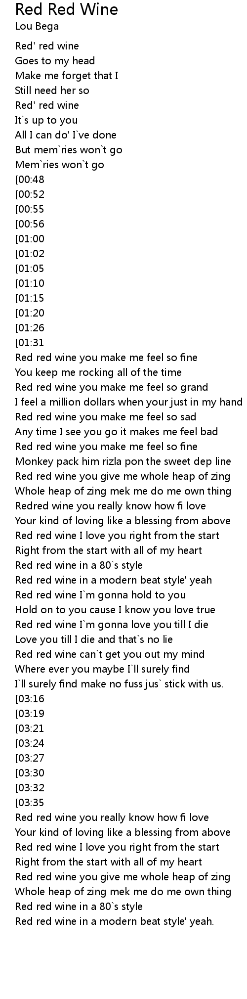Red red wine you really know how fi love |