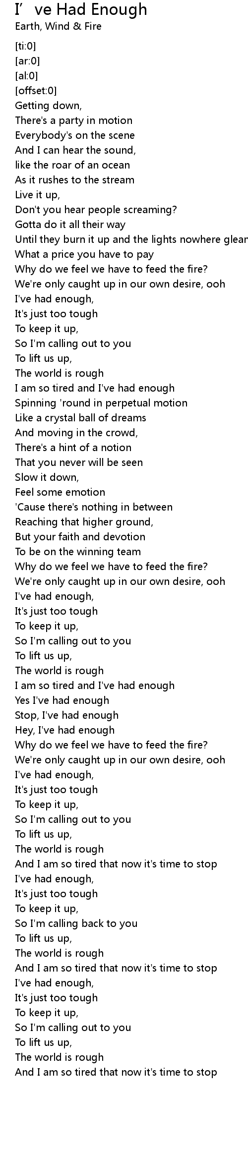 I've had enough, |