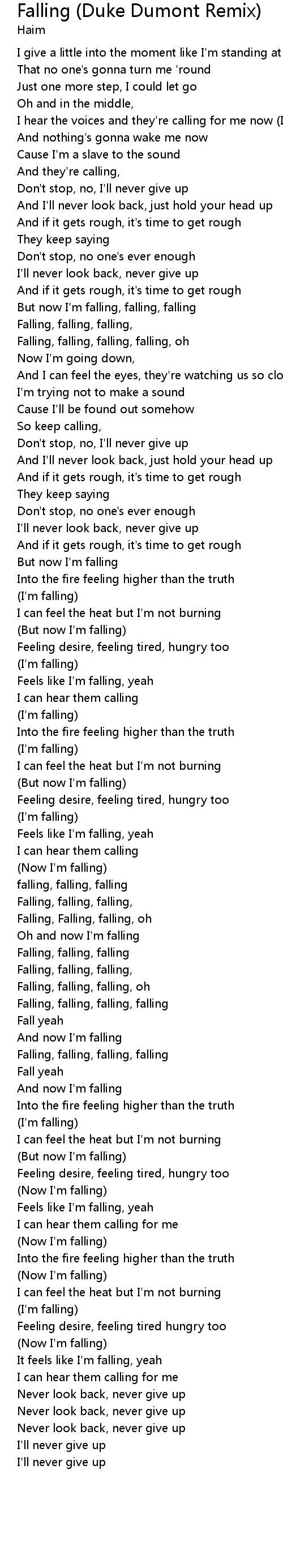 Falling, falling, falling, |