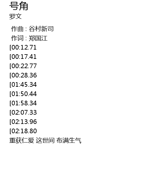 | [03:13.06][02:18.80][01:07.08] | 期待仁爱 盼再睹 一丝生气 |