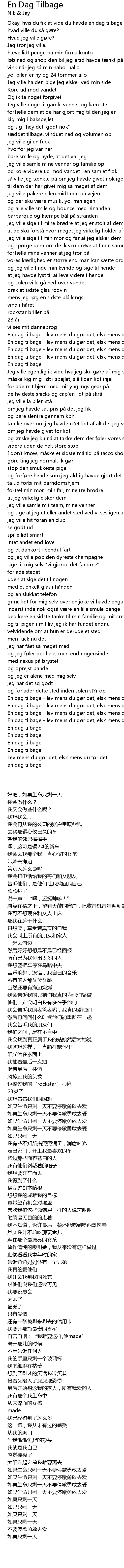 | [02:00.47] | En dag tilbage - lev mens du gør det, elsk mens du tør det |