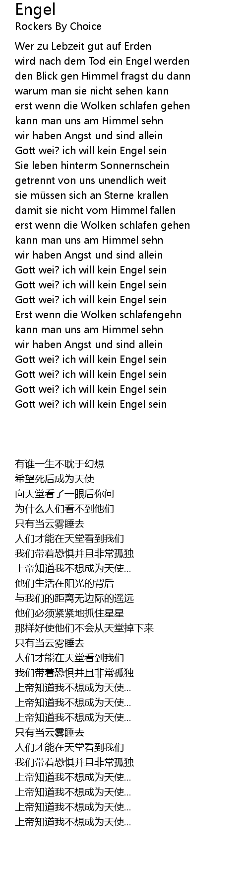 | [02:17.400] | Gott wei? ich will kein Engel sein |