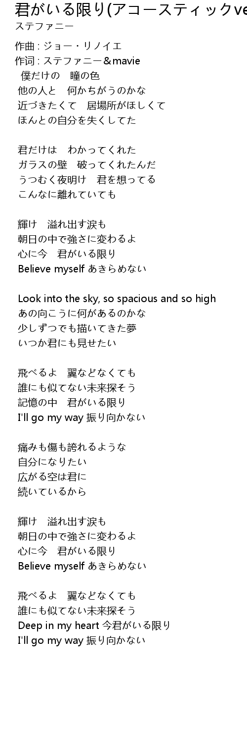 | Song | 君がいる限り(アコースティックver.) |