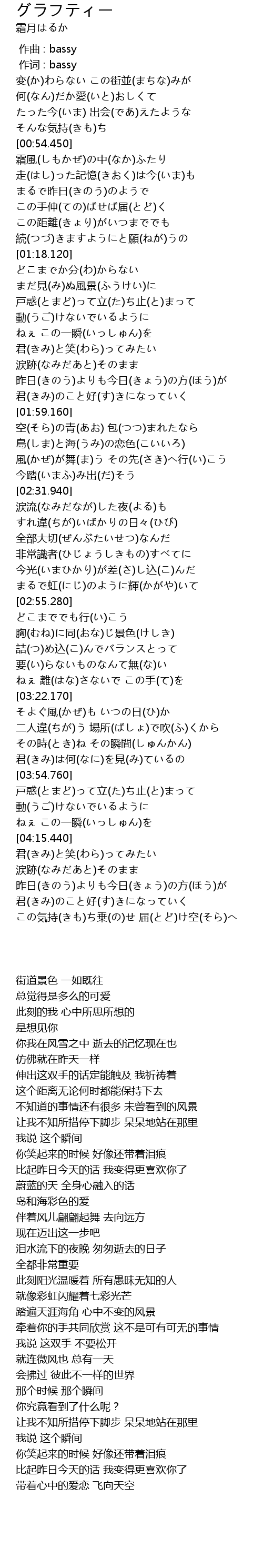| [00:55.610] | 霜風(しもかぜ)の中(なか)ふたり 走(はし)った記憶(きおく)は今(いま)も |