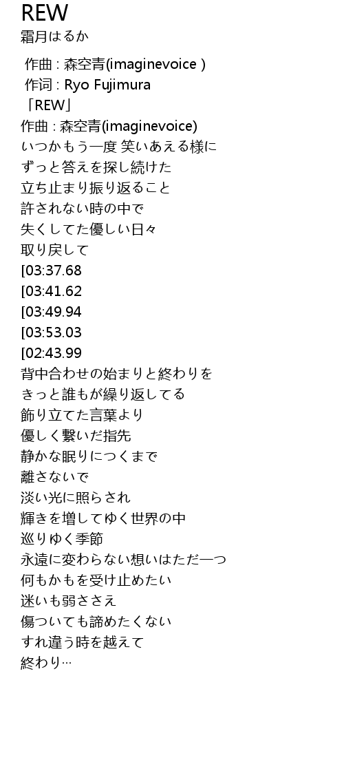 | [00:00.00] | 作词 : Ryo Fujimura |