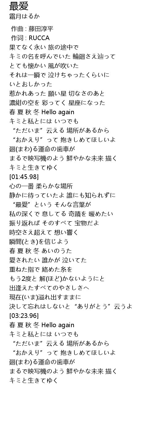 | [03:39.16] | 春 夏 秋 冬 Hello again |
