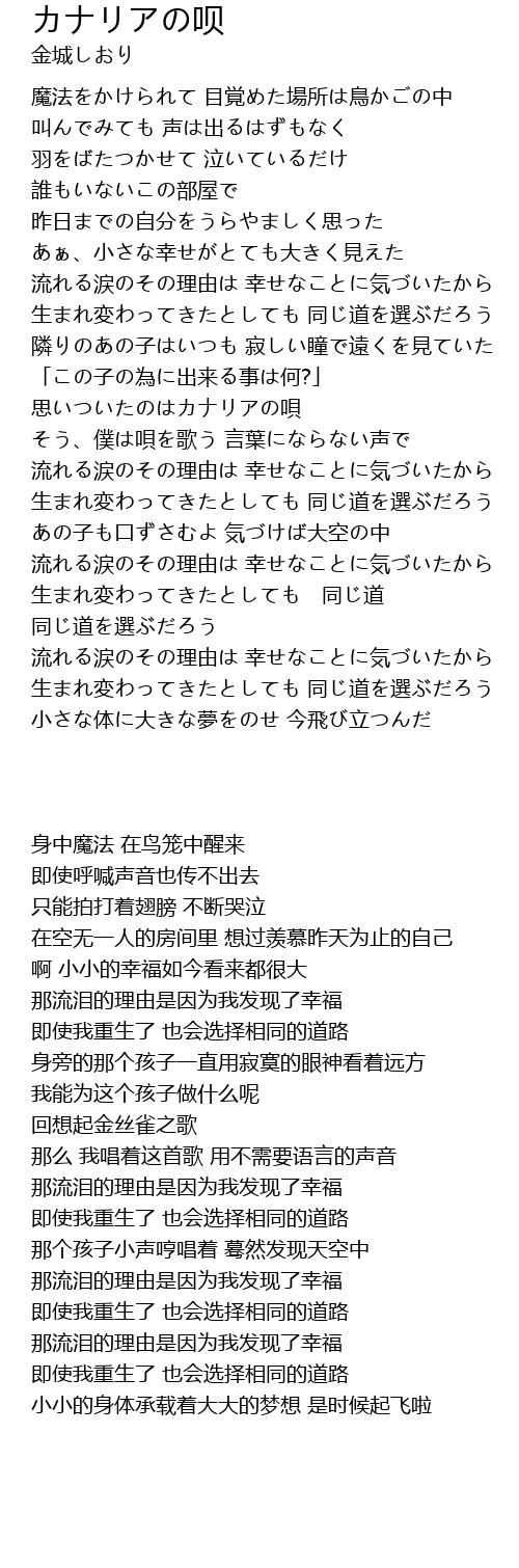| [01:52.10] | 思いついたのはカナリアの唄 |