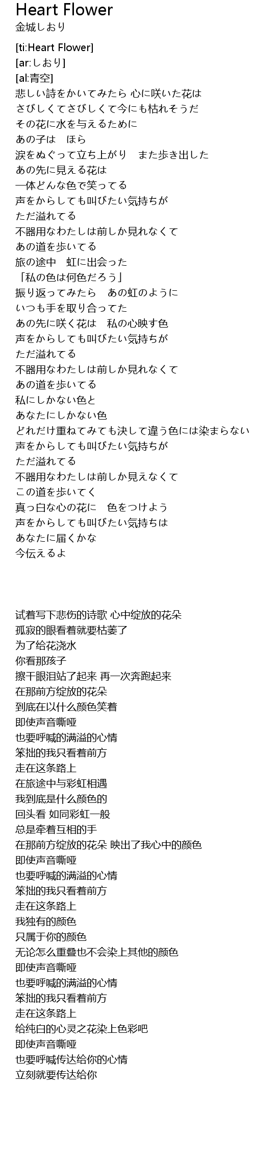 | [03:54.50] | 真っ白な心の花に 色をつけよう |