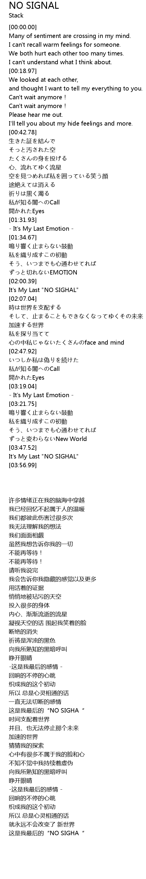 | [02:01.03] | It's My Last "NO SIGHAL" |