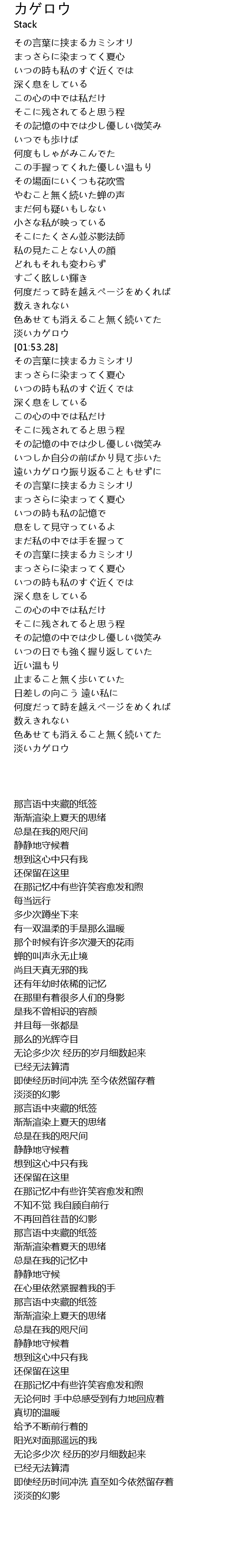 | [00:15.51] | その言葉に挟まるカミシオリ |