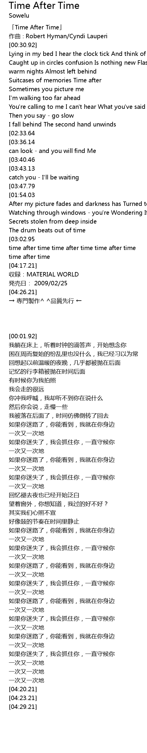 | [00:01.92] | 「Time After Time」 |