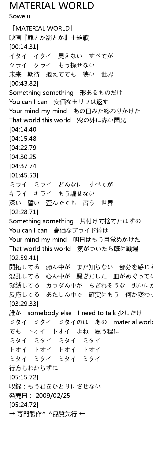 | [00:01.31] | 「MATERIAL WORLD」 |