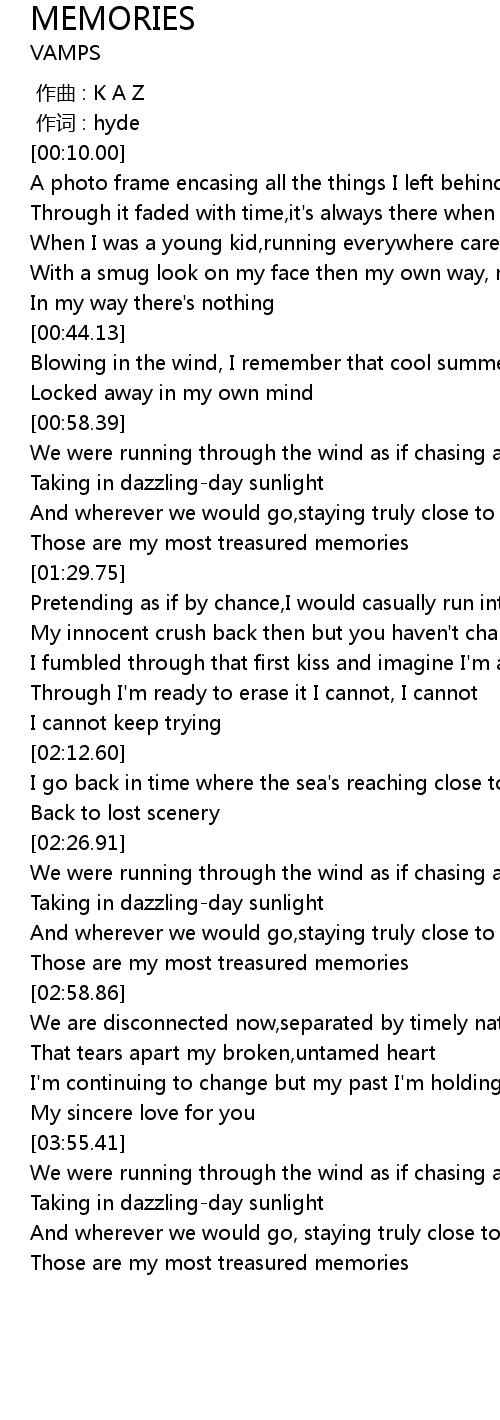 | [01:22.20] | Those are my most treasured memories |