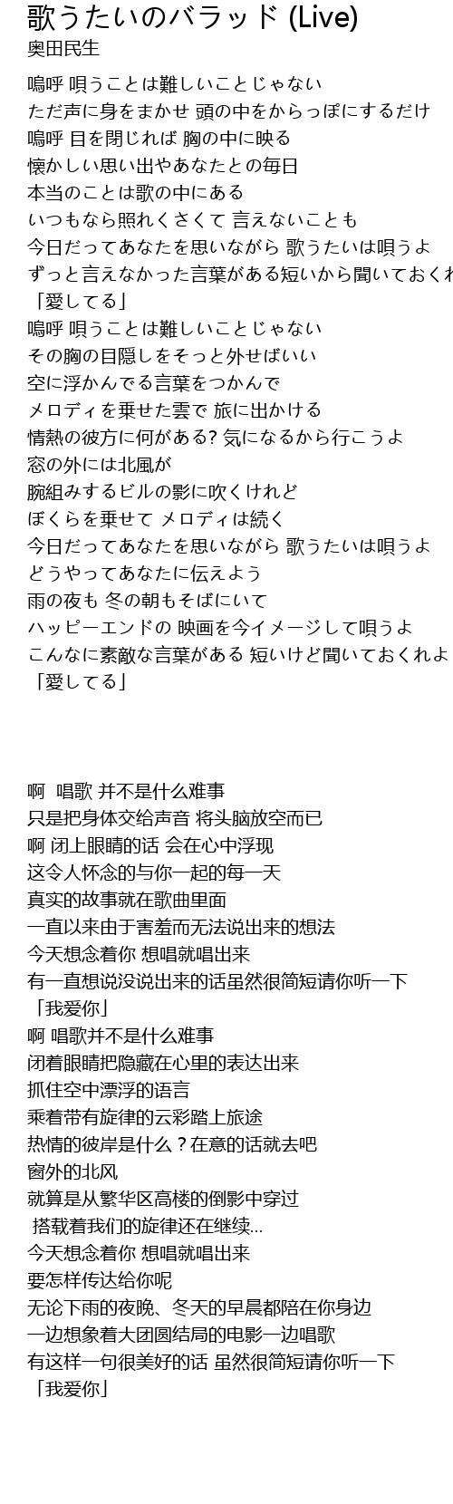 | [04:14.94] | 今日だってあなたを思いながら 歌うたいは唄うよ |