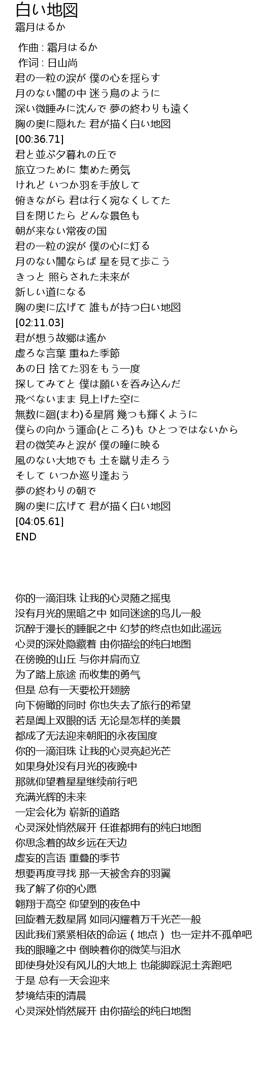 | [03:56.52] | 胸の奥に広げて 君が描く白い地図 |