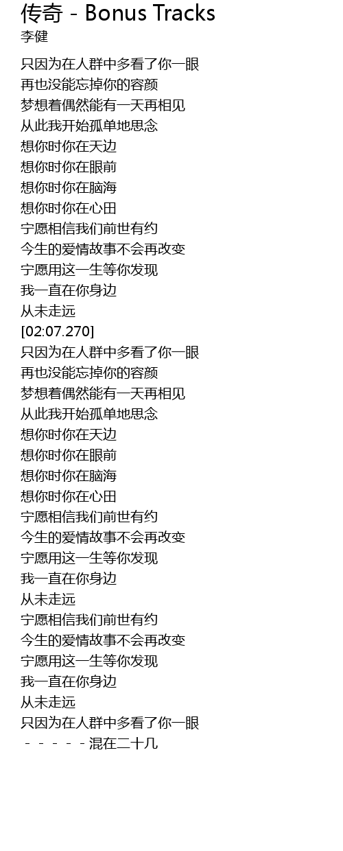 | [04:22.270] | 宁愿用这一生等你发现 |