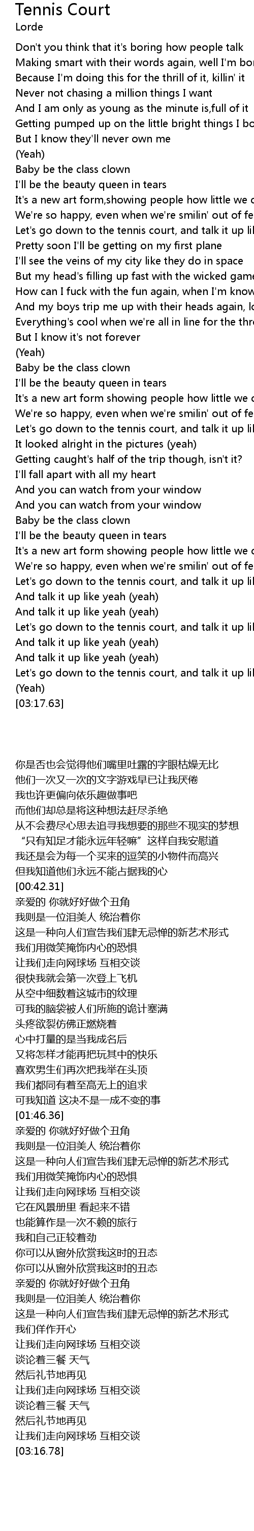 Let's go down to the tennis court, and talk it up like yeah (yeah) |