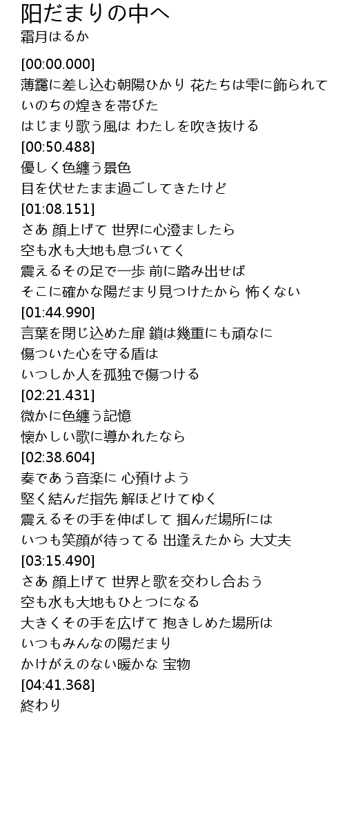 | [04:19.728] | いつもみんなの陽だまり |