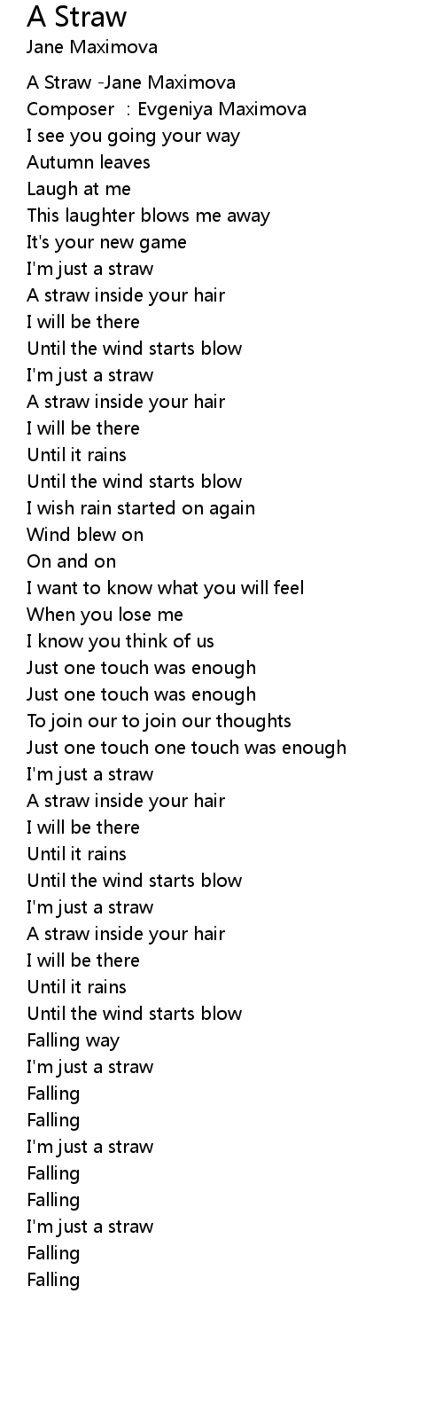 | [00:00.00] | A Straw -Jane Maximova |