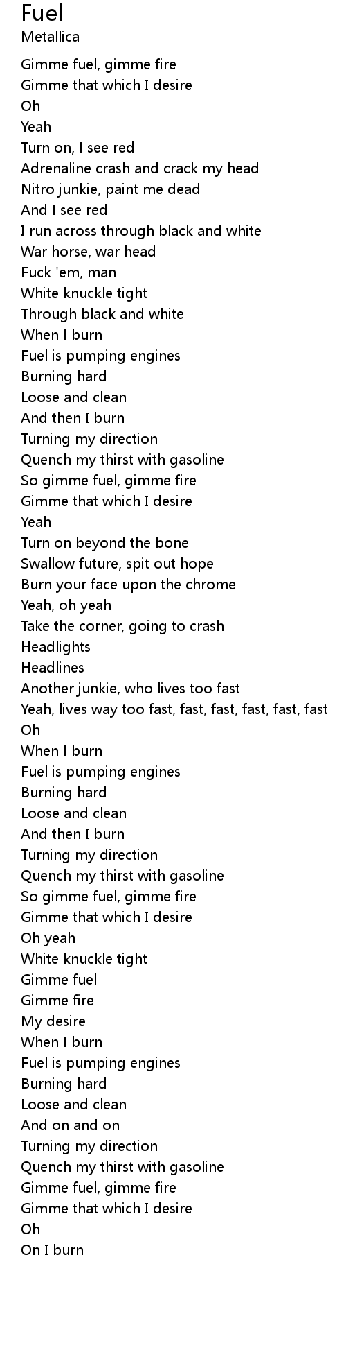 Gimme fuel, gimme fire |