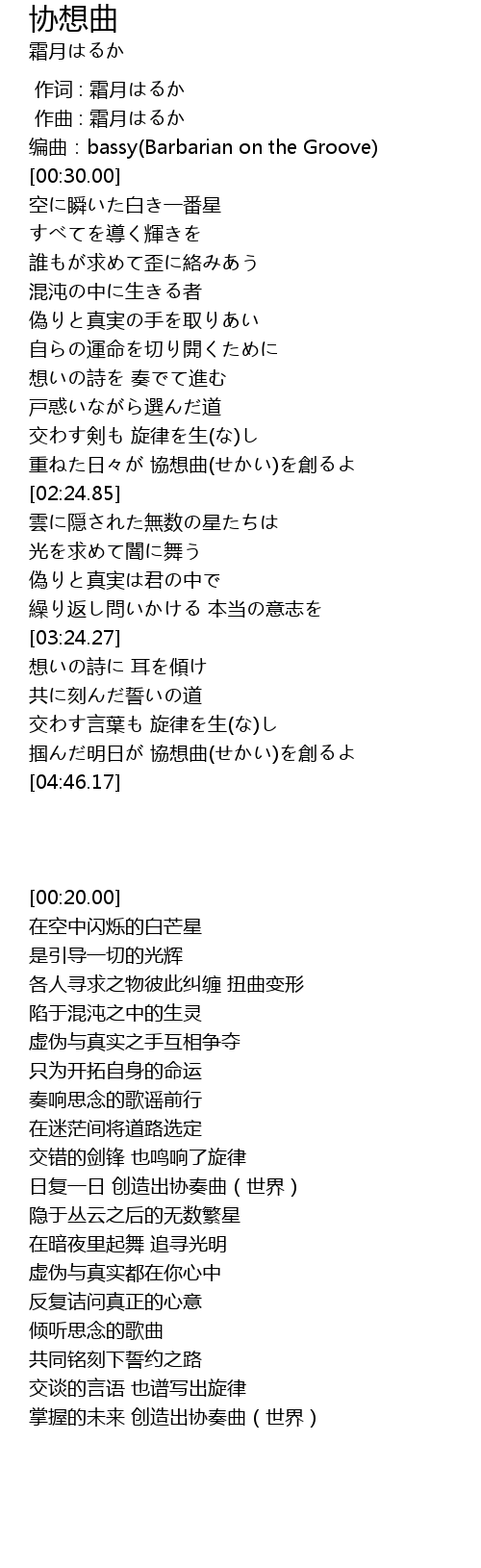 | [02:03.50] | 重ねた日々が 協想曲(せかい)を創るよ |